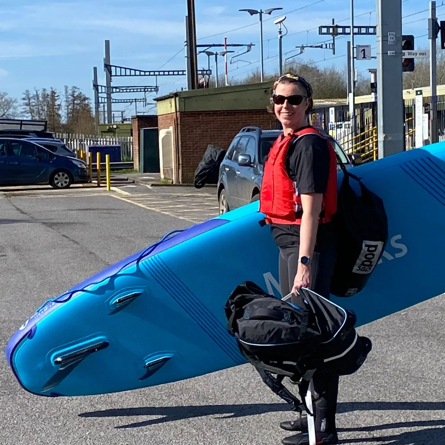 I am a rural girl at heart and the idea of starting or finishing in a city didn’t appeal. I was also mindful of how much chit chat was going to take place when two old friends get together, I didn’t want to be over ambitious in terms of distance to cover. We settled on Thatcham to start our day, with the railway station carpark conveniently located between the train line and the canal, minimising faff at the start and end of the journey. We were aiming for Theale, but the joy of this journey is that there are additional train stations dotted along the route (and beyond) if you want to do less or more. Parking charges are also reasonable (£4.40 for the day), and the return fair back to the car from Theale at the end of the day, only cost £6.30 each. I took my leader bag with its usual kit, plus two McConks SUP bags to transport the boards back on the train at the end of the day. We didn’t start paddling until about midday and caught the train from Theale at about 6pm.